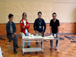 STATEMENT 土に宿るもの。 土に触れる。その肌触りや匂いから様々な記憶が蘇る。 利根川や吾妻川で遊んだ記憶。 遠くに白根山を眺めながら、榛名山や赤城山に囲まれて育った記憶。 からっ風に吹かれ、霜が降りる冬の日も照りつける太陽が眩しい夏の日も夢中で芸能に勤しんだ記憶。 DNAから肉体を通り越して、脈々と受け継がれている土の記憶。 上州に生まれ、上州に育った私の芸術の源泉は土の「記憶」を辿るところにある。 吾妻川に記憶の源流を辿り、中之条の森の中に佇む。 風が種を運び、雨が降る。 土から芽が吹き、木が生え、実がなり、枯れる。枯れ草は土に還り、また風が吹く。 自然が育んできた時間の流れはダイナミックに再生を繰り返す。 その再生の瞬間に、歌や踊りなどの芸能が生まれる。 ここでは何かを作り上げる必要がない、 ただ余計なものを削ぎ落としていくこと。 そこに残ったものが自ずと作品になる。 2011年から3期に渡り、中之条ビエンナーレに参加して、中之条の人と自然とアートの「魅力」を感じることができた。私が暮坂の山中に発表した作品「失われた民族Gの遺構群」におけるGとは、まさしく、わたしそのものでもあり、中之条に暮らす人々であり、群馬県人や日本人であったりもする。遺構群には、過去はもちろんのこと、未来から浮かび上がったメッセージが込められている。わたしなりの「魅力」への応答である。また地元の民話や歴史を題材にして、「TSUMUJI能」や「暮坂野焼き能」などの脚本・演出・音楽などや地元の雅楽やジャズのバンド等と小鼓のセッション演奏をつむじで行い、中之条における芸能やパフォーマンスの可能性を感じた。それらの経験は2013年2015年のオープニング、クロージングイベントのディレクター及びなかんじょ劇団の演出を務めるに当たり、大変役に立った。地元の人たちにインタビューを行い、ワークショップを重ね、その話の中から「栗の木」の神話と「未来少年ジョーの物語」を創作した。物語を基本に、地元の人たちに手伝って頂き、唄や踊り、音楽、儀式に満ち溢れた独特の中之条ビエンナーレにおける「祭り」を開催することができた。 中之条ビエンナーレ2017においては今井尋也+なかんじょ劇団として参加し、旧伊参小学校のランチルームにてワークショップ、ランチミーティング、展示、舞台公演を行い沢山の来場者に恵まれました。 なかんじょ劇団 |
